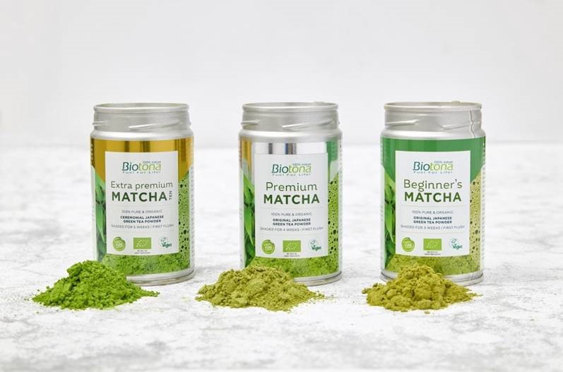 Matcha jest najrzadszą, najdroższą i najbardziej wyrafinowaną japońską zieloną herbatą . W rzeczywistości można by ją nazwać królową zielonych herbat. Herbaty Biotona Matcha są wytwarzane wyłącznie ze świeżych, młodych liści herbaty (tencha) z odmian Saemidori, Okumidori lub Yabukita. Krzewy herbaciane są ocieniane plandekami przed słońcem przez okres od 3 do 5 tygodni przed zbiorem, po czym liście są zbierane w tradycyjny sposób ręcznie podczas pierwszego zbioru na początku maja. Po natychmiastowym poddaniu procesowi gotowania na parze, tencha jest mielona na Matchę, ultradrobny zielony proszek. Odbywa się to albo za pomocą tradycyjnych kamieni mielących, albo ceramicznych pereł, w zależności od rodzaju Matchy. W rezultacie produkt końcowy nie zawiera łodyg ani żyłek liści, ale składa się wyłącznie z czystego miąższu liści.