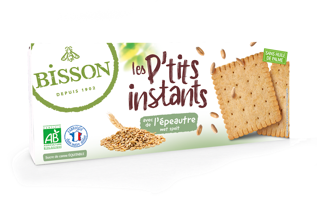 mąka PSZENNA*, cukier trzcinowy brązowy**, dezodoryzowany olej słonecznikowy*, mąka z PSZENICY ORKISZ pełnoziarnista* (15 %), mąka JĘCZMIENNA słodowana*, naturalny aromat waniliowy*, substancje spulchniające (węglany amonu, węglany sodu), sól morska, regulator kwasowości: kwas cytrynowy, przeciwutleniacz: ekstrakt z rozmarynu*. (*składnik ekologiczny, **składnik z certyfikatem Fair trade).