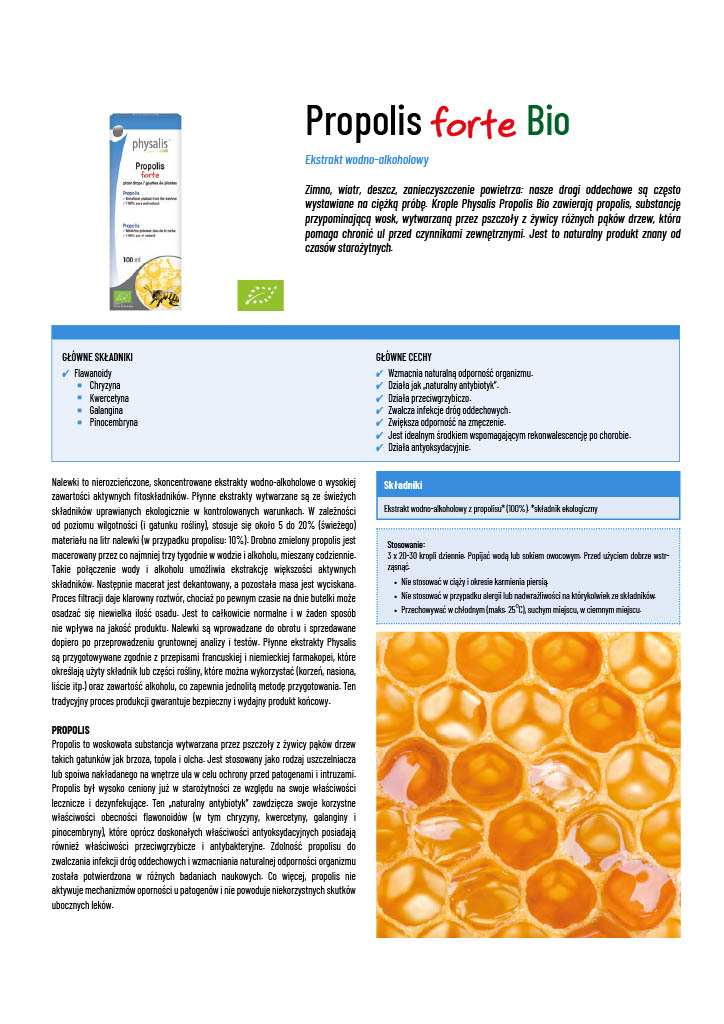 wodno-alkoholowy ekstrakt z propolisu* 100 %. (* certyfikowany składnik ekologiczny)